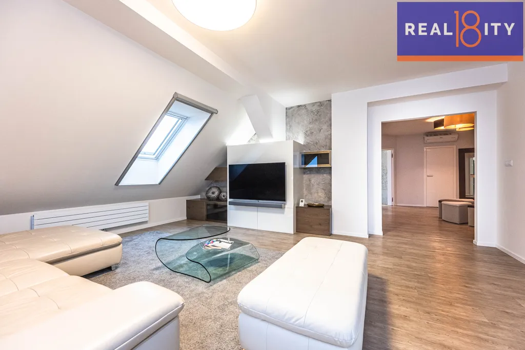 Celková plocha bytu 139 m2 včetně sklepní kóje 4 m2. K bytu náleží dvě garážová stání.