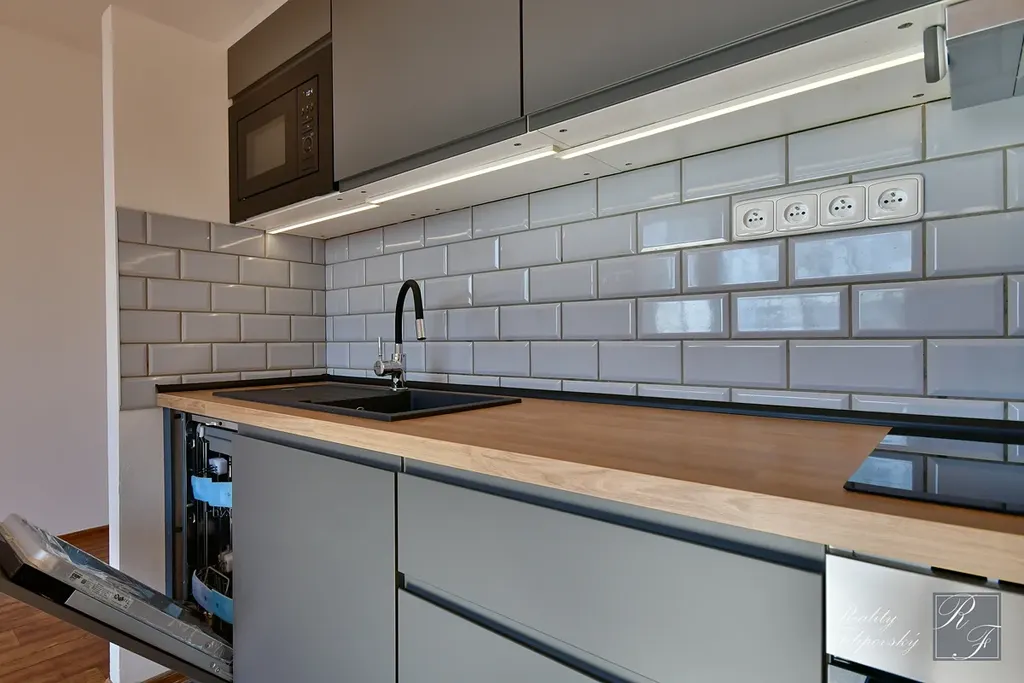 Byt má zcela novou kuchyňskou linku s vestavnou myčkou i mikrovlnnou troubou, zděnou koupelnu se sprchovým koutem a prostorem pro pračku. Je zde příznivá orientace a výhled do zeleně. V blízkosti je MHD i veškerá občanská vybavenost.