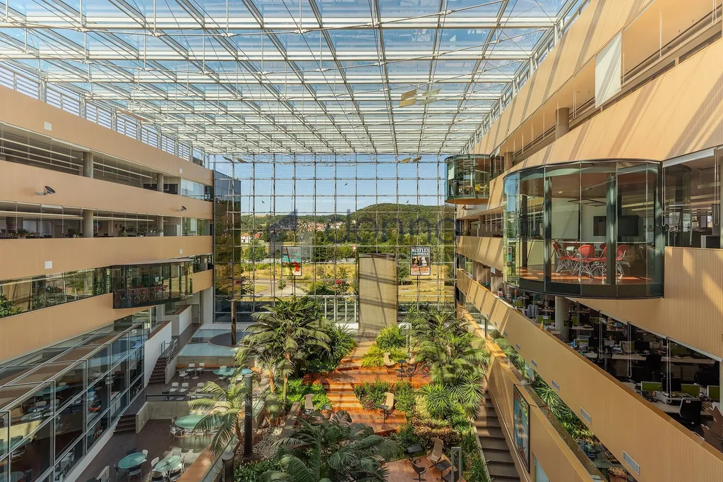 Prosklená budova ve tvaru písmene U s pěti nadzemními a dvěma podzemními podlažími. V budově nyní nabízíme k pronájmu kancelářské jednotky v 5.NP o rozloze od 250 m2 do 1365 m2. Díky efektivnímu půdorysu můžete využít stávající dispozice prostor, nebo si je flexibilně přizpůsobit svým představám. Aktuálně nabízené kanceláře jsou k dispozici ve velmi vysokém standardu včetně zdvojených podlah, LED osvětlení. Dominantou celého prostoru je atrium s bohatou zelení a vodním prvkem. K pracovnímu komfortu přispívá také jídelna přístupná všem nájemcům a kolárna.