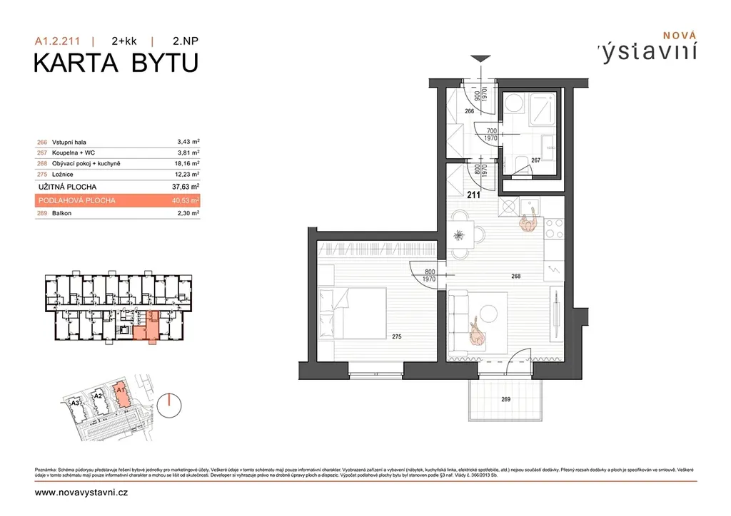 • Dispozice 2+kk s podlahovou plochou 40,53 m2