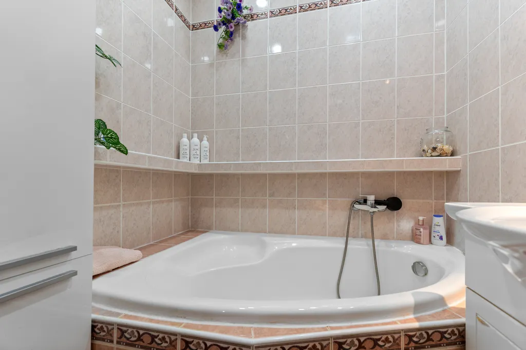 Samostatná plně vybavená kuchyně poskytuje dostatek místa pro vaření i stolování. Byt dále nabízí zrekonstruovanou koupelnu s vanou a samostatnou toaletu.