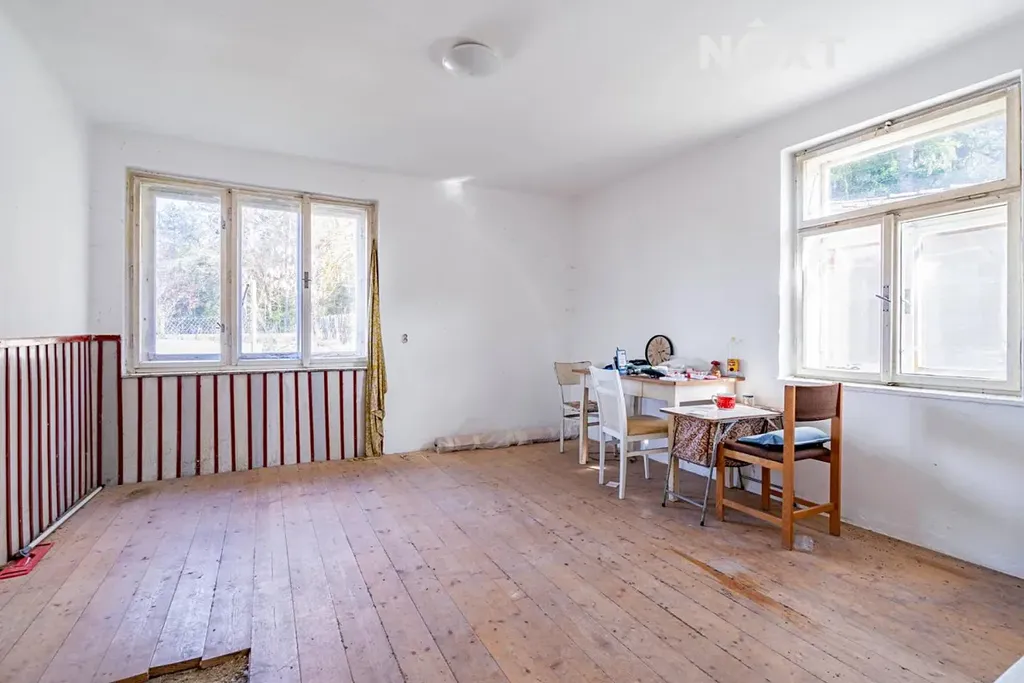 Hlavní obytná část domu nabízí tři místnosti včetně kuchyně a prostoru pro vybudování koupelny. Součástí domu je také sklep a půdní prostor, který může nabídnout další potenciál k rozšíření obytné části.