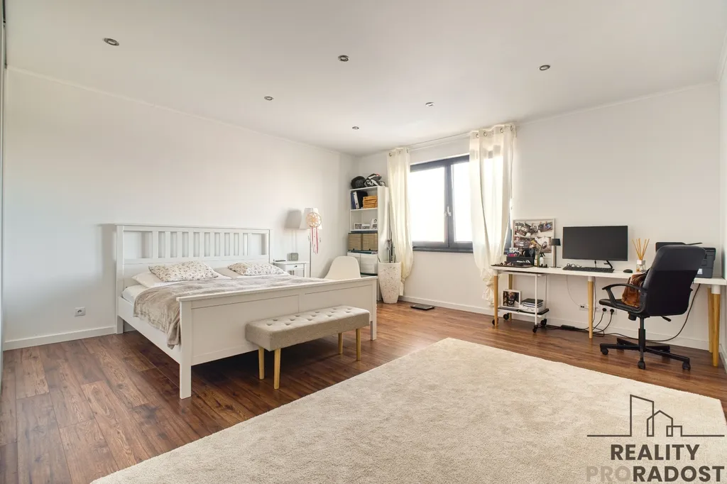 Soukromou zónu v patře tvoří tři samostatné ložnice. Hlavní ložnice (master bedroom) disponuje vlastní prostornou šatnou a vstupem do koupelny s vanou i sprchovým koutem.