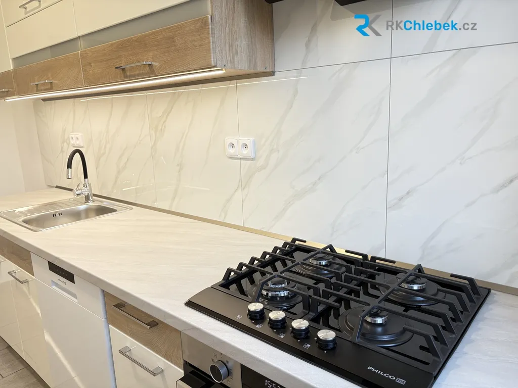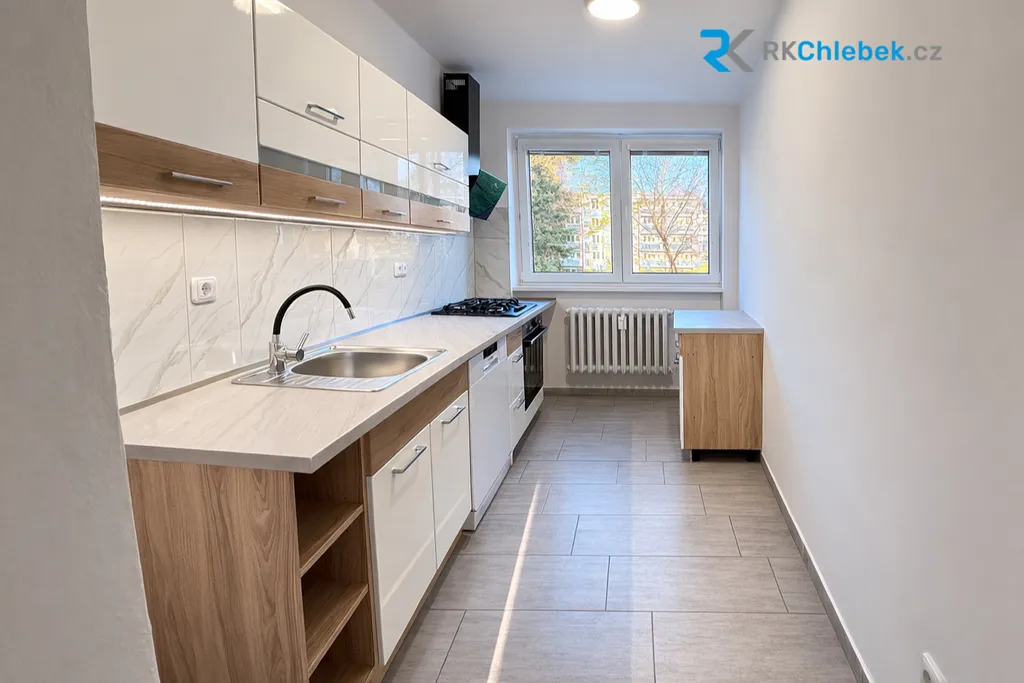 Byt o rozloze 74 m2 nabízí tři samostatné, prosluněné pokoje, které poskytují dostatek soukromí i prostoru pro rodinu nebo pracující pár, kuchyň, koupelnu a toaletu. Součástí bytu je podlouhlý balkon, který vybízí k ranní kávě i večernímu odpočinku. Kuchyň je vybavena novými, moderními spotřebiči, konkrétně troubou, plynovým sporákem, digestoří a myčkou. Je zde také příprava na vlastní lednici (nájemce si zajišťuje vlastní). Koupelna s vanou i samostatná toaleta jsou po částečné rekonstrukci a působí čistým a moderním dojmem.