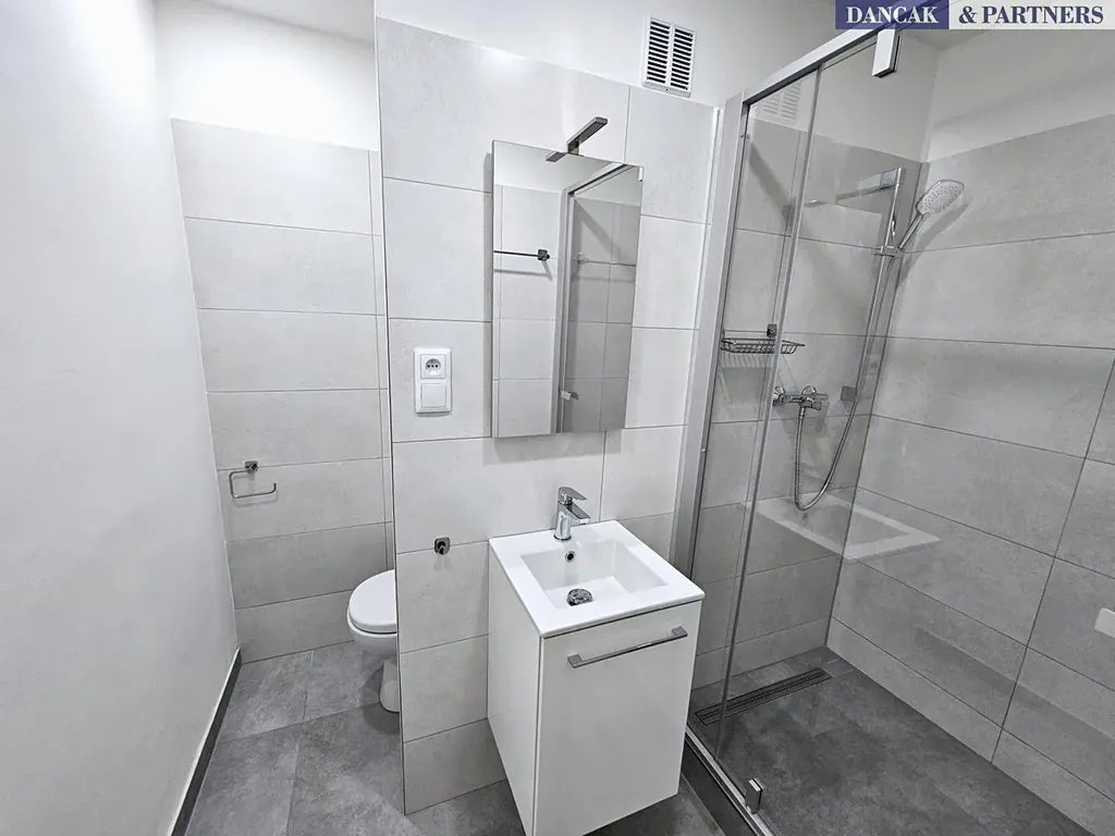 - koupelna se sprchovým koutem, keramickými obklady, umyvadlem se skříňkou a toaletou