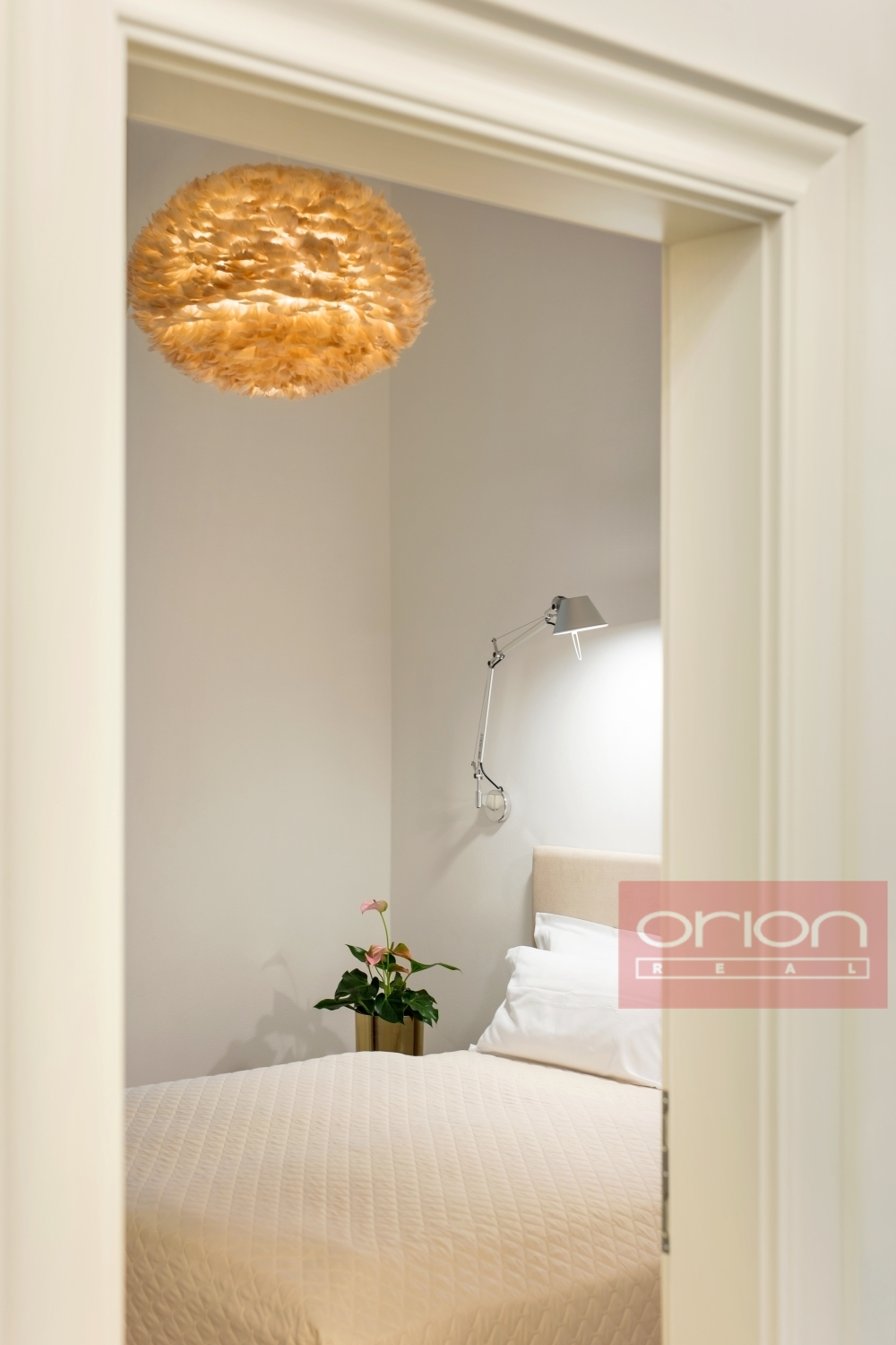Byt tvoří prostorný obývací pokoj s plně vybavenou kuchyní, samostatná ložnice s výhledem do klidného vnitrobloku, koupelna se sprchovým koutem a oddělené WC. Ve vstupní chodbě se nachází prostorná walk-in šatna a technické zázemí s pračka-sušičkou. Byt má vysoké stropy a úložné prostory na míru.