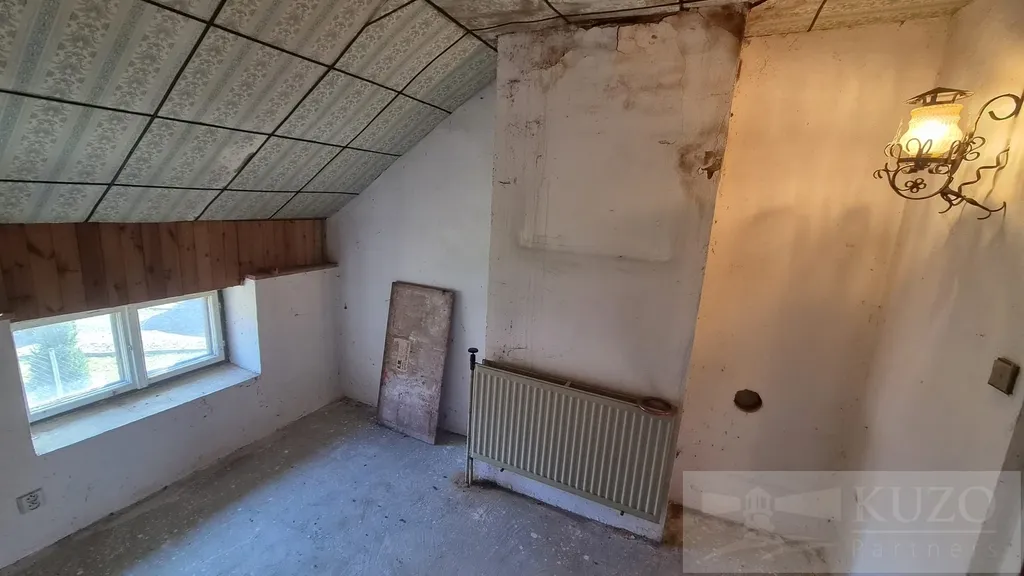 V exkluzivním zastoupení majitele nabízíme k prodeji nepodsklepený samostatně stojící rodinný dům bez č. p. / č. ev., s jedním nadzemním podlažím a obytným podkrovím, s jednou bytovou jednotkou o dispozici 5+1, situovaný v zástavbě rodinných domů v obci Meclov - část Němčice, s přístupem ze zpevněné komunikace p. č. 919 a po částečně zpevněné komunikaci p. č. 876/1. Pozemek je rovinný, rodinný dům je napojen na elektro přípojku a vlastní studnu, odkanalizování je provedeno do jímky. Dopravní dostupnost je zajišťována autobusovými spoji, Němčice leží ve vzdálenosti cca 2,5 km od silnice I. třídy č. I/26 ve směru na hraniční přechod Folmava - Plzeň. Základní obchodní síť a síť služeb (základní a střední školy, městský, stavební a finanční úřad, banky, čerpací stanice PHM, market, sportovní areál, zdravotní středisko a nabídky pracovních příležitostí) jsou v obci s rozšířenou působností - Horšovský Týn ve vzdálenosti cca 4,5 km, nejbližší nemocnice, kompletní obchodní síť služeb jsou v bývalém okresním městě Domažlice ve vzdálenosti cca 7 km. Technický popis: základové pasy jsou kamenné a betonové, svislé nosné konstrukce zděné z cihelného a smíšeného zdiva, střecha sedlová, krytina z vlnitého eternitu, okna dřevěná špaletová, vytápění ústřední s kotlem na tuhá paliva. Dispoziční řešení: 1. NP - zádveří, chodba, schodiště do podkroví, pokoj, kuchyň, koupelna + toaleta, chodba, sklad, spíž, garáž. Podkroví - hala, chodba, toaleta, půda. Stáří rodinného domu je cca 100 let a cca 10 let nevyužívaný k trvalému bydlení. Zastavěná plocha a nádvoří: 373 m2, ostatní plocha: 178 m2, pozemků celkem: 551 m2.