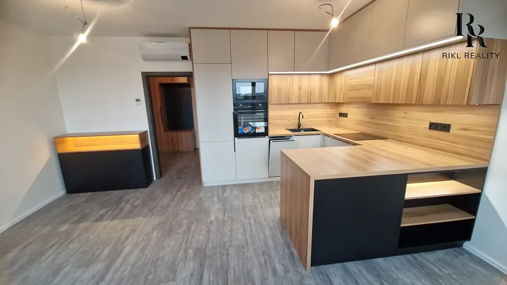 Interiér bytu je navržen v moderním stylu s důrazem na komfort bydlení. Velkým benefitem je podlahové vytápění, které zajišťuje příjemné teplo v celém bytě, a také klimatizace, díky které si udržíte ideální teplotu i v letních měsících. Součástí bytu je také praktická komora, která poskytuje dostatek úložného prostoru.