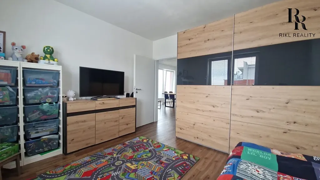 Interiér je řešen moderně a prakticky. Součástí vybavení je kuchyňská linka včetně myčky, klimatizace ovládaná mobilním telefonem, robotický vysavač a inteligentní osvětlení. Díky jihovýchodní orientaci je byt příjemně prosvětlený po celý den.