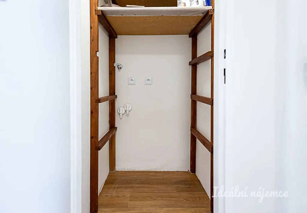 V koupelně se nachází sprchový kout, umyvadlo se zrcadlem a koupelnová skříňka. Toaleta je umístěna samostatně. Pračka má vyhrazené místo v praktické komoře. V předsíni je k dispozici skříň, botník a věšák.