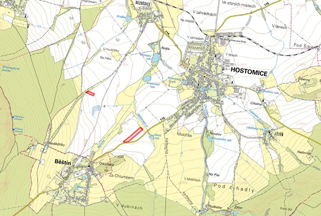 Druhý celek je situován v k.ú. Hostomice pod Brdy, na listu vlastnictví č. 634. Opět se jedná o výlučné vlastnictví. Předmětem prodeje jsou parcely: