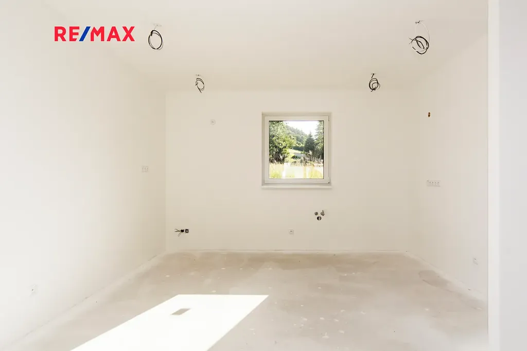 Jedná se o ekonomicky úspornou novostavbu jednopodlažního bungalovu navrženou tak, aby splňovala současné nároky na moderní domov. Tak je koncipován i interiér s dispozicí 4+kk. U vchodu do budovy se nachází technická místnost pro obsluhu tepelného čerpadla, dále jsou umístěny 3 ložnice, 2 z nich mají vlastní šatnu, z chodby je dále vstup do koupelny s WC a do dalšího, samostatného WC. V čele chodby vstoupíme do prostorného, světlého obývacího pokoje s přípravou na kuchyňský kout. Zde jsou francouzská okna do zahrady.