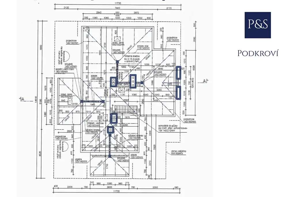 • Patro: 3–4 ložnice, dětské pokoje, koupelny a šatny.