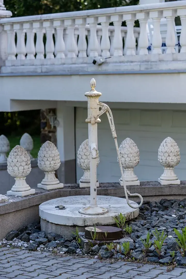 Pozemek 1 775 m² nabízí maximální soukromí. Zahradou protéká regulovaný potok, vzrostlé stromy a příjezdová cesta s ambientním osvětlením vytvářejí jedinečnou atmosféru. Garáž pro 2 vozy + parkování celkem až pro 8 automobilů.