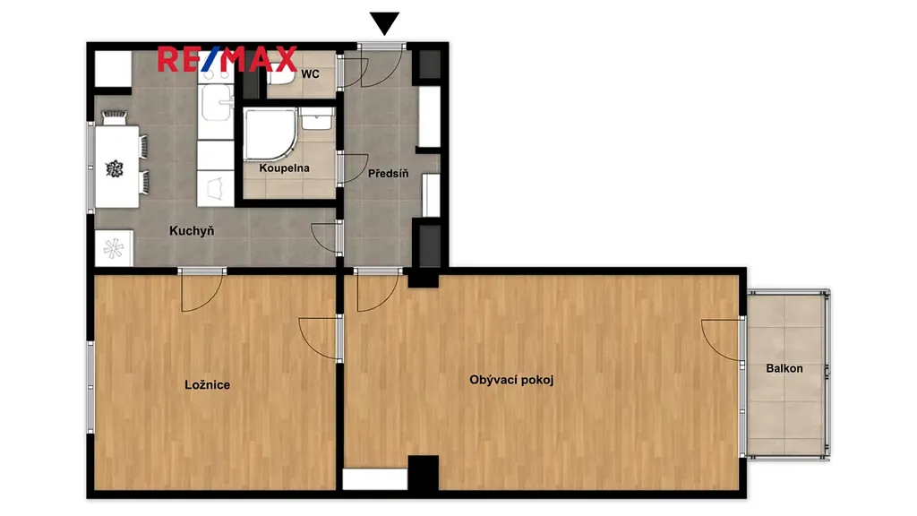 Celková plocha bytu včetně balkonu a sklepu je 54 m².