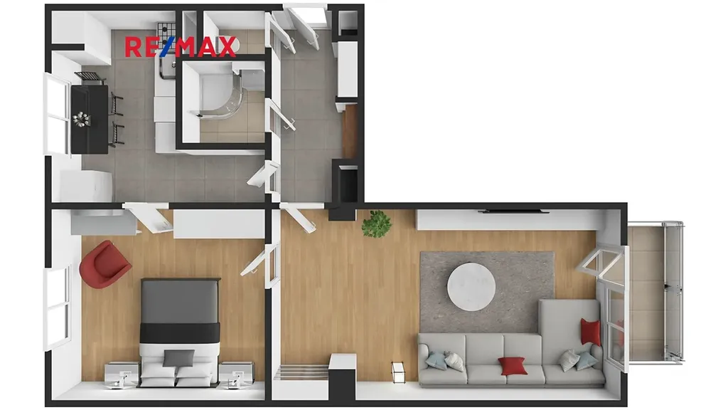 Obývací pokoj a ložnice jsou ponechány bez nábytku, takže si je nový majitel může zařídit podle vlastního vkusu a potřeb.