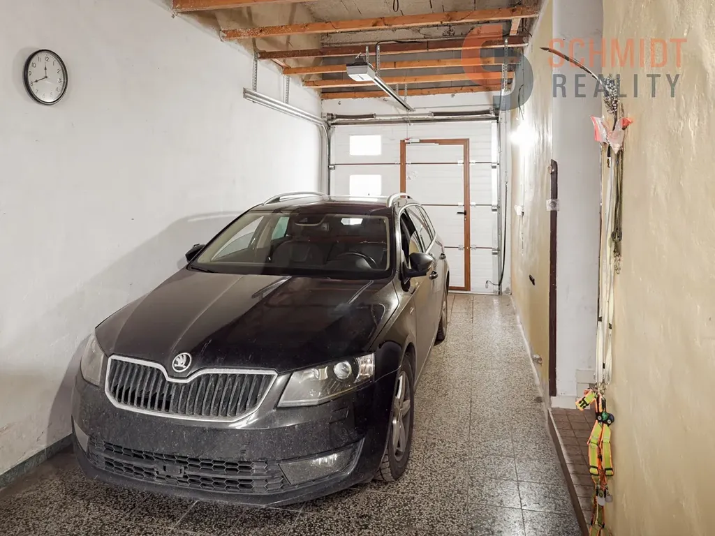 Dům je z velké části podsklepený, má průjezd využitelný jako kryté parkování (2,9 × 10 m) a nabízí možnost vestavby plnohodnotného obytného podkroví, na půdě jsou připraveny rozvody vody, topení i odpadů.
