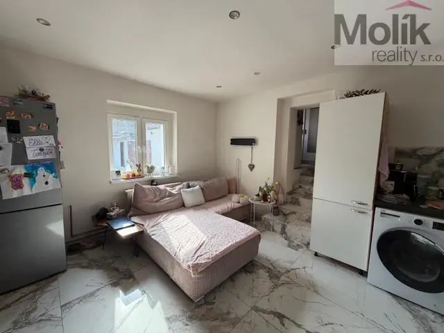 Nabízíme k prodeji rodinný dům s malou zahradou o celkové velikosti pozemku 168 m2. Rodinný dům vhodný k okamžitému nastěhování a užívání nacházející se v okrajové části obce prošel částečnou rekonstrukcí týkající se především sociálního zařízení, částečně podlah, štuků a stropů. Střechu domu tvoří střešní krytina BRAMAC. Vytápění v domě je zajištěno plynovým kotlem s rozvodem do radiátorů a dále pak jako další alternativní zdroj tepla krbovými kamny. Komín v domě je kompletně vyvložkován. Do domu zavedena elektřina, voda. Odkanalizování je zajištěno do obecní kanalizace. V celém domě jsou instalována plastová okna. Půda která v současnosti nevyužívána je vhodná jako další možné využití pro další obytnou část domu. U domu se dále nachází stavba která je rozdělena na dvě samostatné místnosti které jsou dnes využívány jako sklad a dílna ze které se lze dostat do malého sklepa (vhodný pro uchování potravin a zeleniny. Občanská vybavenost v místě je dobrá (obchod, služby, škola, MHD, vlak....). U domu se dále nachází velký dvůr a menší předzahrádka. Celý pozemek je oplocen s možností vjezdu přímo k domu. V případě zájmu ponechat i částečné vybavení. Pro případní doplňující informace volejte kdykoliv 7 dní v týdnu.