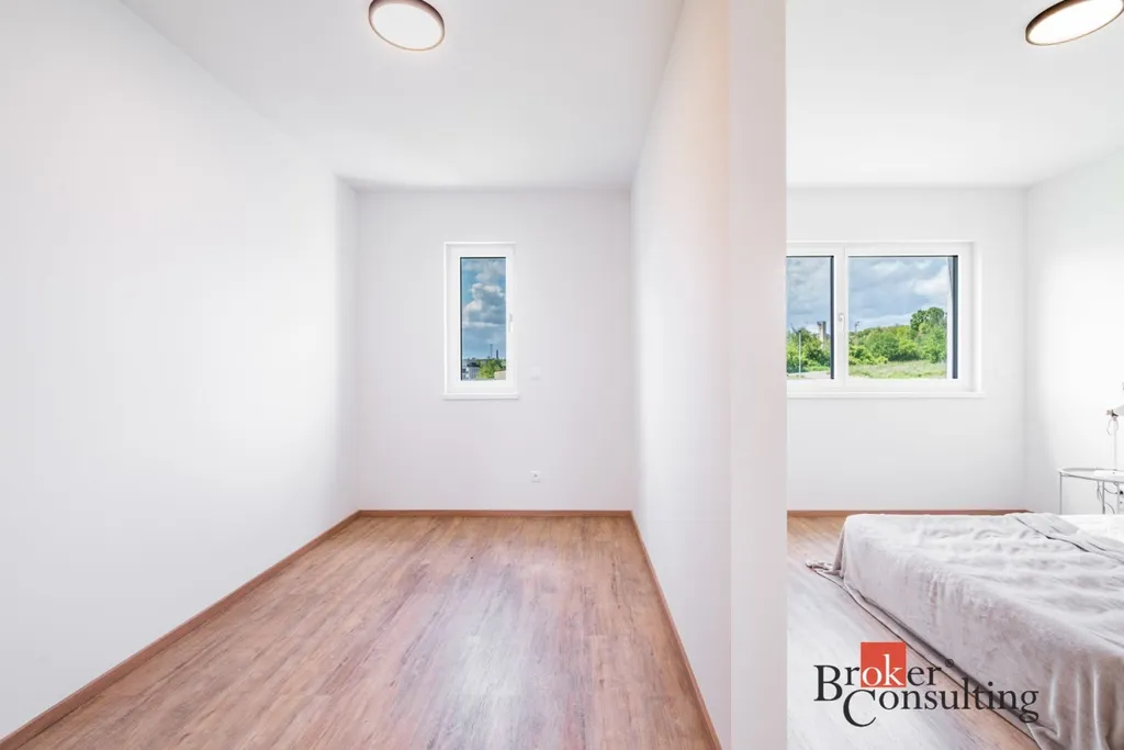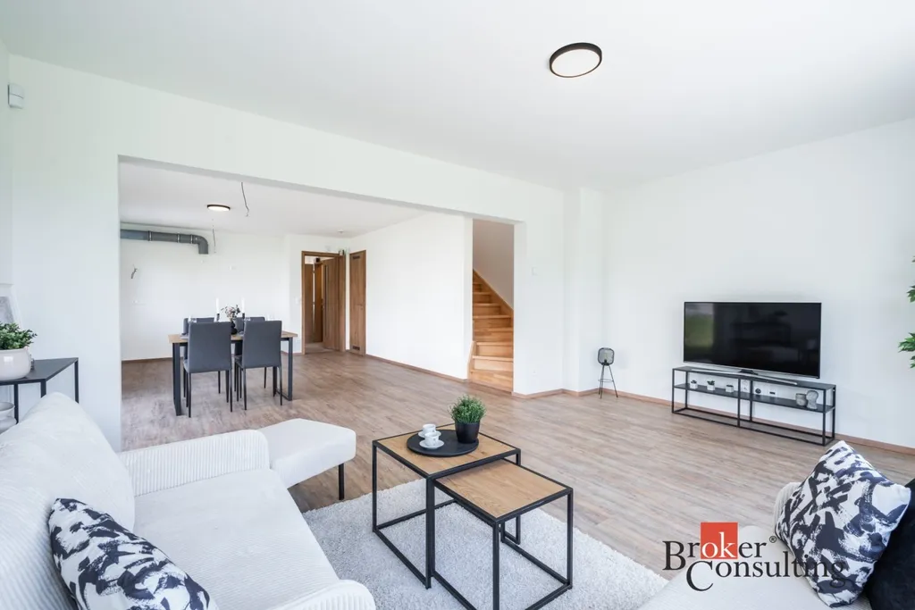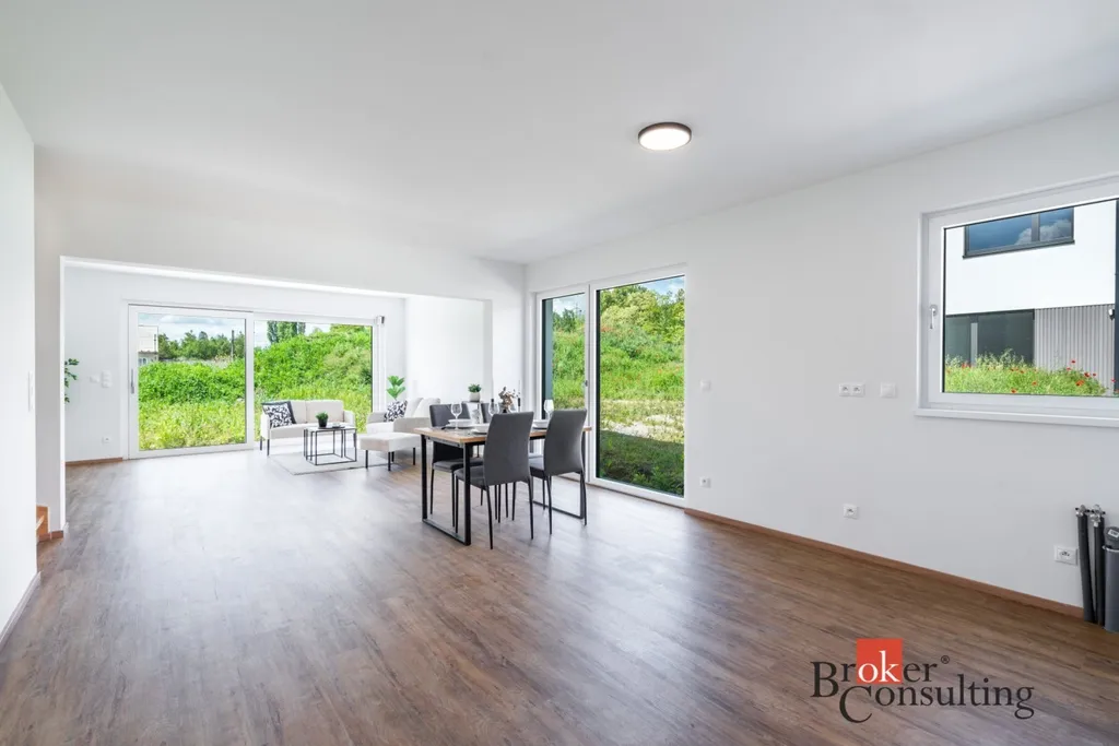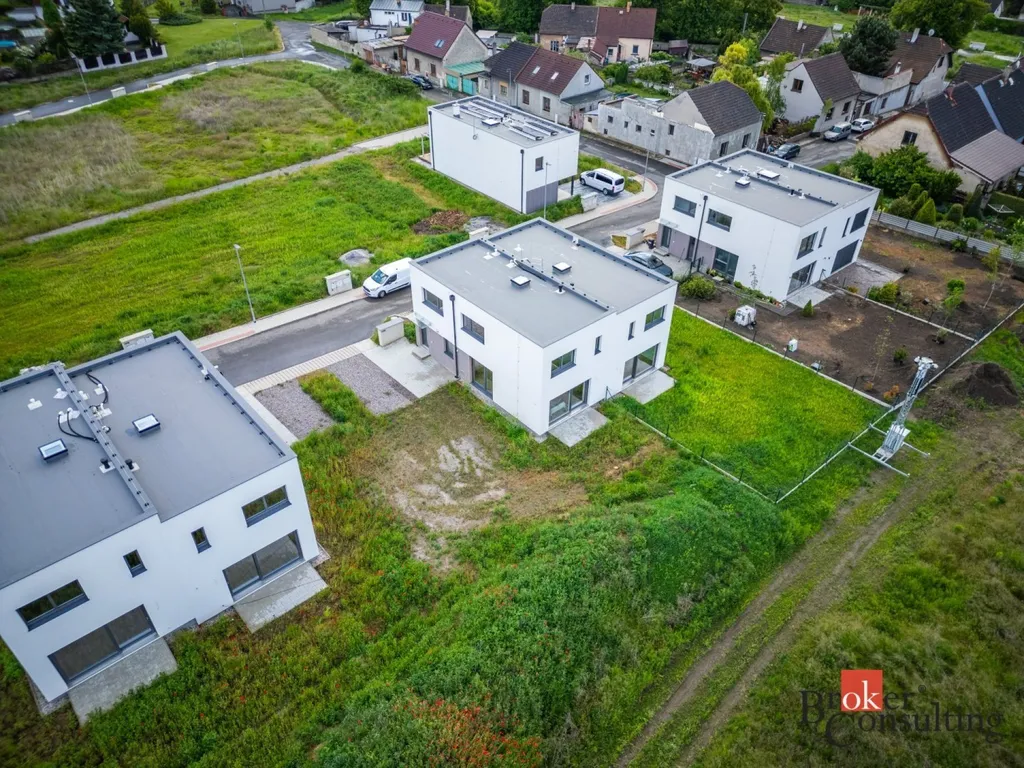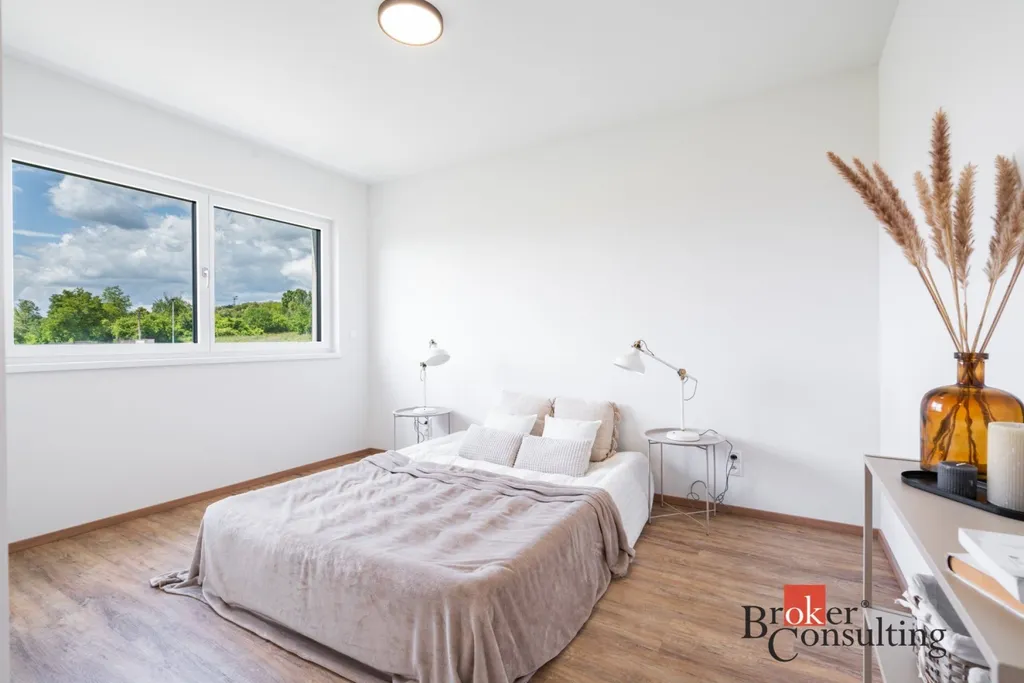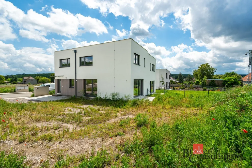 Tato právě dokončená novostavba o dispozici 5+kk nabízí užitnou plochu 119 m² a je ideální volbou pro rodinné bydlení, ale i kohokoliv, kdo chce kvalitní zázemí pro práci z domova s komfortem a prostorem navíc. Pozemek o velikosti 352 m² je ideálním místem pro odpočinek, grilování nebo dětské hry. Přímý vstup z obývacího pokoje na zahradu vytváří plynulé propojení vnitřního a venkovního prostoru.