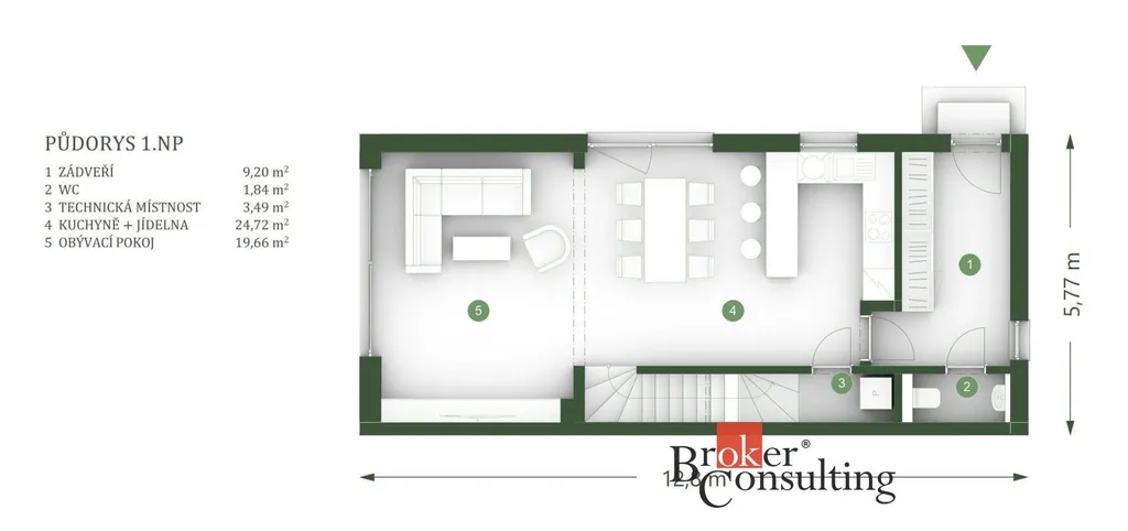 • Otevřená kuchyně s jídelnou (24,72 m²)
