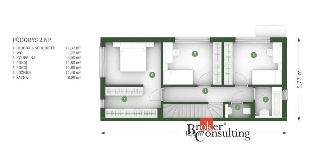 • Prostorná chodba se schodištěm (11,32 m²)