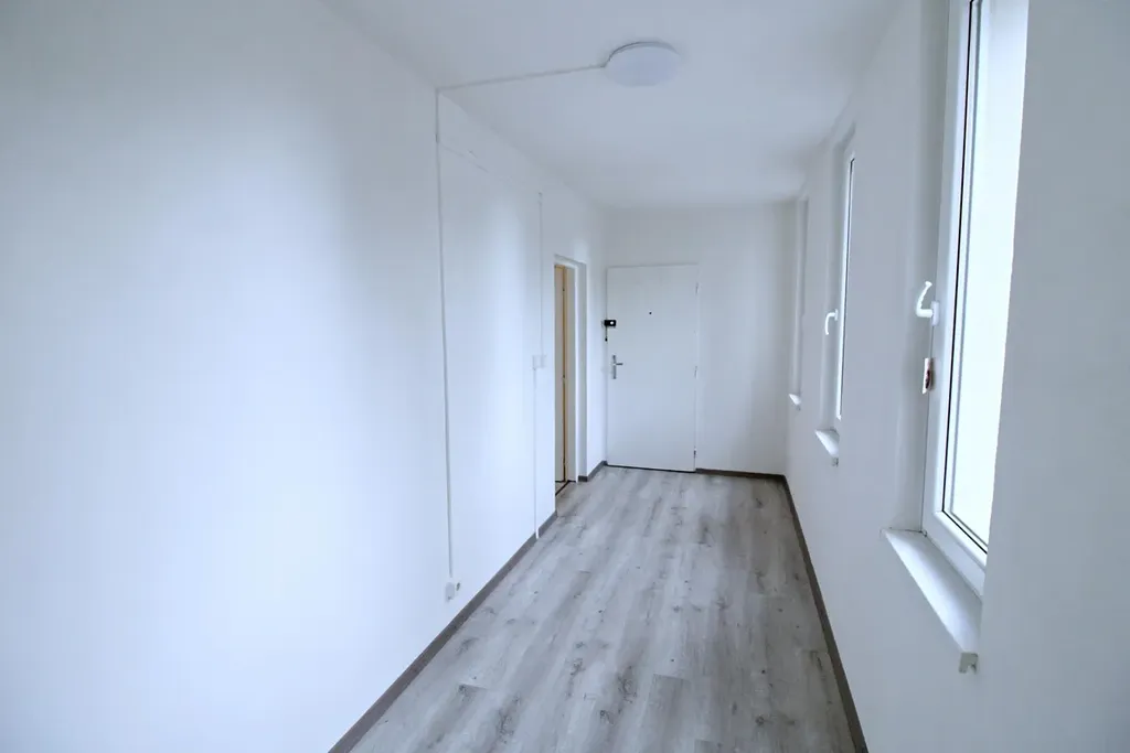 Velkou výhodou bytu je druhá předsíň s okny sloužící původně jako společná část chodby, kterou je možné užívat jako další místnost.