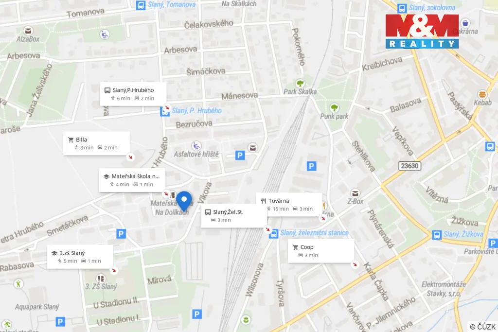 V blízkosti najdeme obchod Billa, školu, školku, sportovní i dětské hřiště, restauraci i plavecký bazén.