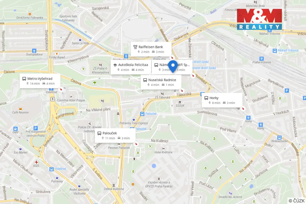 Dlouhodobý pronájem stylového bytu 1+kk (23 m²) v novorenesančním cihlovém domě z konce 19. století na Náměstí Bratří Synků, Nusle. Byt ve 2. nadzemním podlaží (1. patro) domu s výtahem. Plně vybavená kuchyň (indukce, elektrická trouba, vestavěná lednice), pracovní deska a designová knihovna pro pohodlný home office, nastavitelná postel přestavitelná na dvojlůžko, 50" QLED chytrá televize. V přízemí domu vyhlášená kavárna se zahradou. Klidná část, výborná dopravní dostupnost, u radnice Prahy 4 a magnoliového sadu na Náměstí G. Velmi dobrý stav.