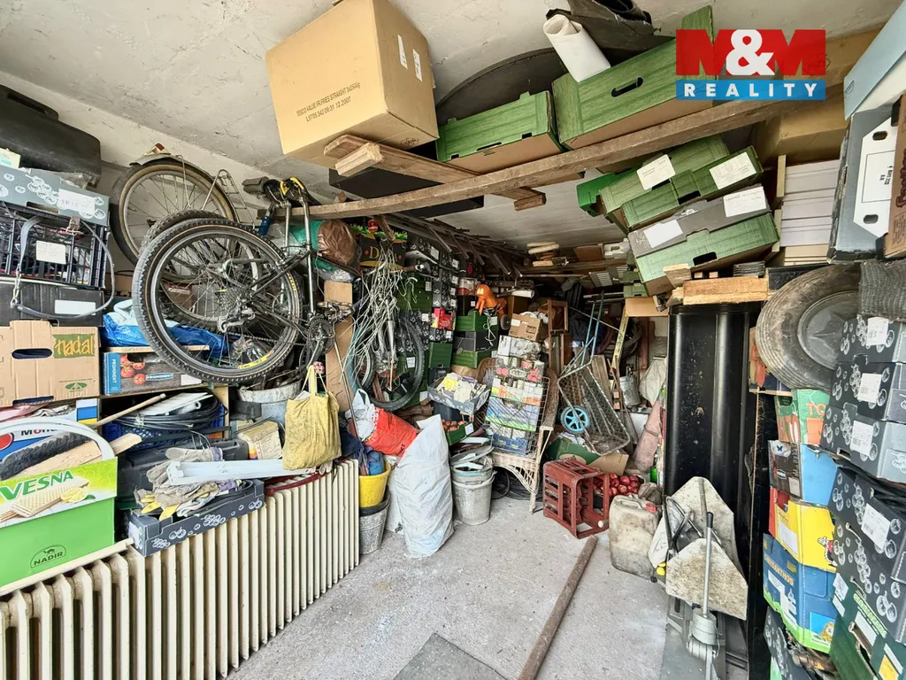 Prodej řadové cihlové garáže. Jsou vždy dvě garáže na jedné parcele - v tomto případě se jedná o spodní garáž. Užitná plocha 19 m², stav dobrý, garáž je suchá. Elektřina je zavedena, momentálně není připojena. Garáž je řadová. Vhodné k parkování i jako dílna. Prohlídky a bližší informace po domluvě.
