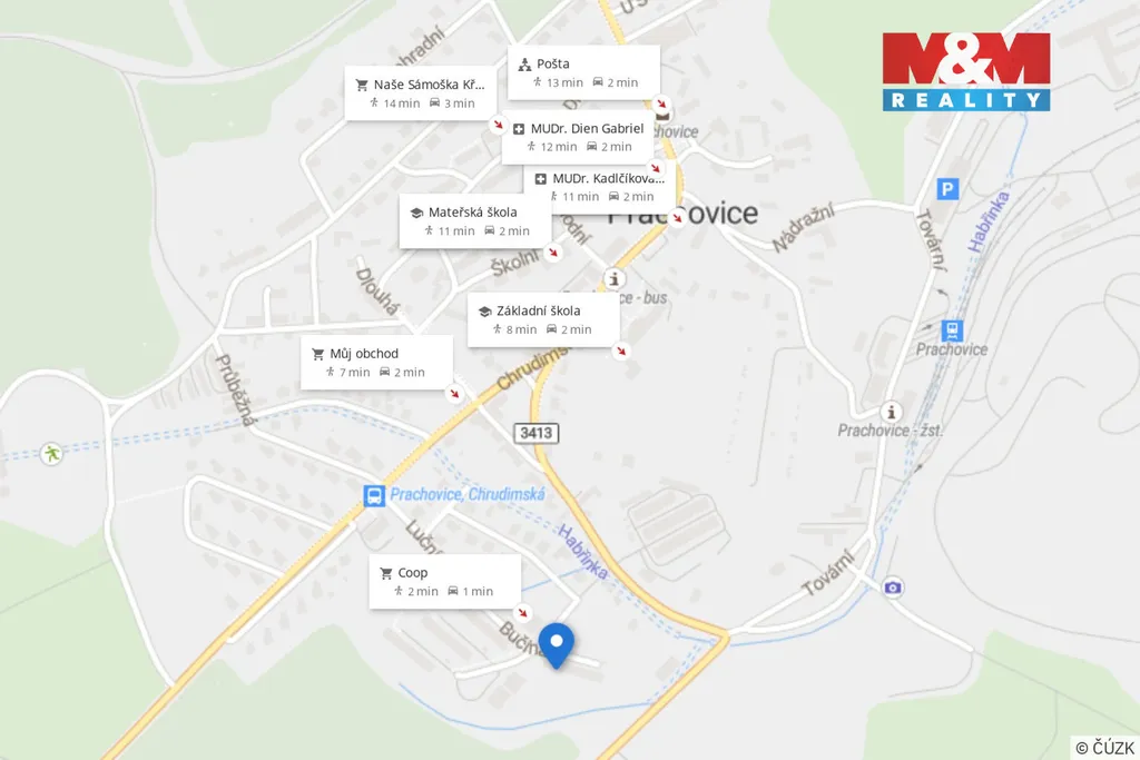 Velkou výhodou je dobrá dostupnost občanské vybavenosti a dopravního spojení přímo v obci.