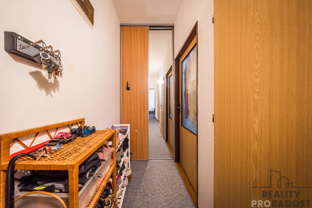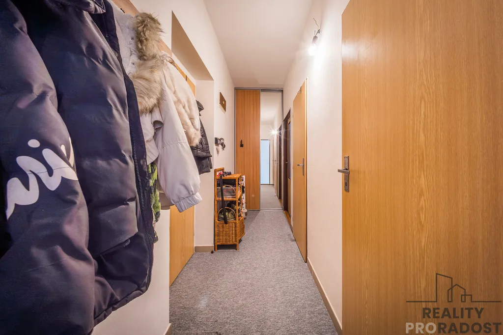 Dispoziční řešení bytu je velmi praktické ( pokoje mají samostatný vstup), velkou výhodou je šatna- úložný prostor, vybavená nábytkem, obývací pokoj disponuje vstupem na nový balkon, ideální pro relaxaci a výhled do okolí. Prostorný, zděný sklep a garáž se nachází v suterénu bytové domu, garáž je samostatně přístupná, má betonovou podlahu, plechové vrata a velkou výhodou je všechno pod jednou střechou.
