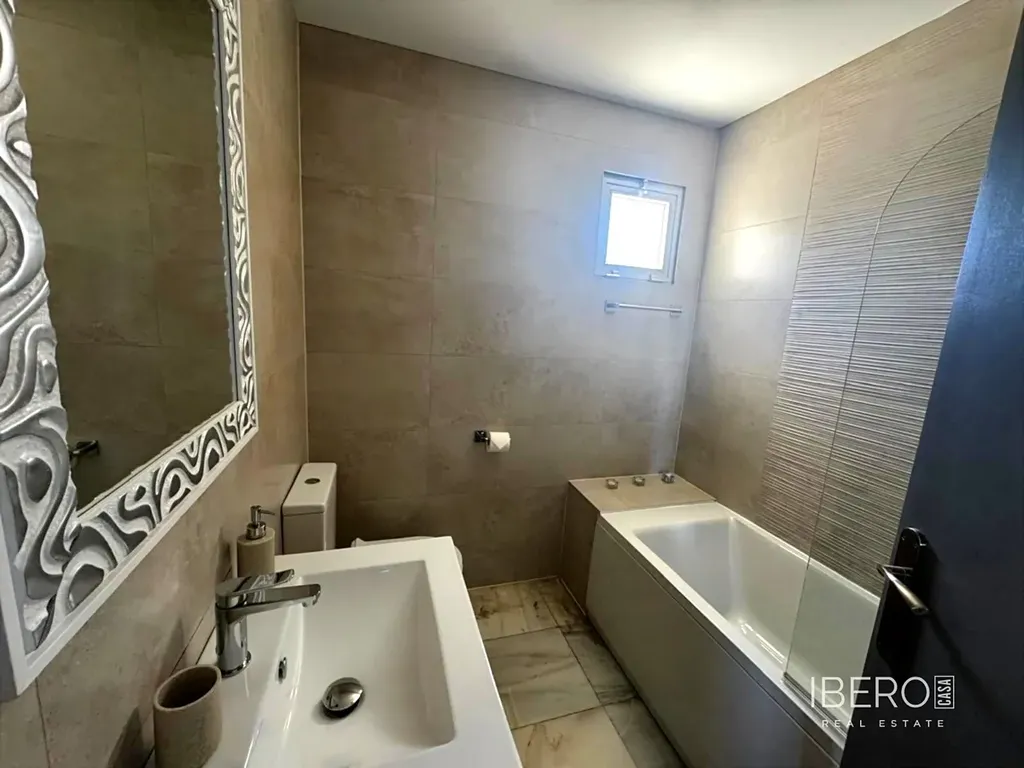 Nemovitost se prezentuje v dobrém stavu a je vybavena mramorovou podlahou v celém bytě, vestavěnými skříněmi, optickým internetem a plně vybavenou kuchyní. Z obývacího prostoru si můžete vychutnat příjemný výhled do společných zahrad a na moře. Krásný společný bazén poskytuje klidné prostředí pro relaxaci a odpočinek.
