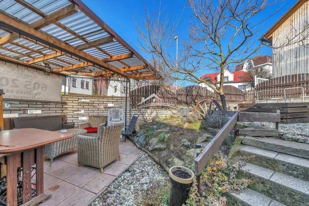 Součástí domu je také prostorná garáž, kterou je možné změnit na další obytnou místnost, na pozemku je také praktické venkovní zázemí – pergola s krbem a udírnou, která vytváří příjemné místo pro posezení s rodinou nebo přáteli. K dispozici je rovněž zahradní stavba vhodná pro uskladnění nářadí nebo zahradní techniky.