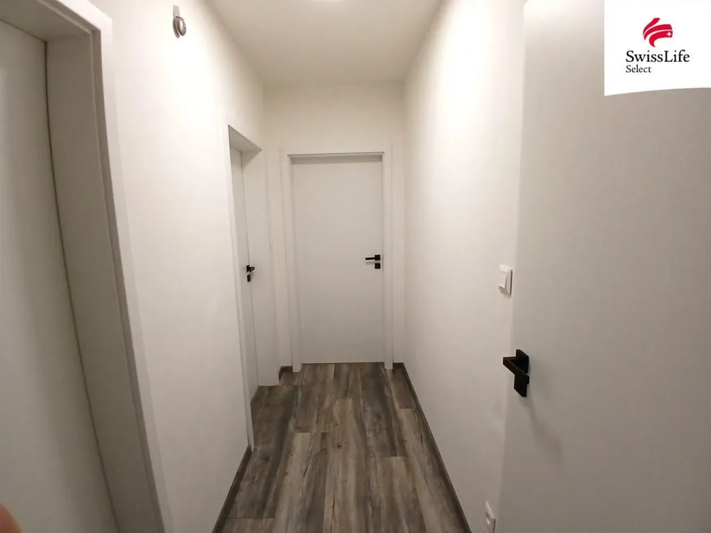 Za vchodovými dveřmi najdete prostornou předsíň, kam se s přehledem vejde velká vestavěná šatní skříň a dále chodbu, ze které jsou vstupy do ložnice, obývacího pokoje s kuchyňským koutem a do koupelny s toaletou.