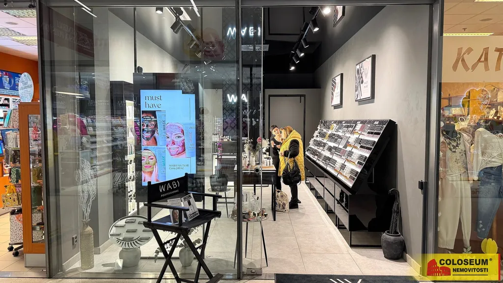 Prodejna se nachází mezi dlouhodobými nájemci – prodejnou textilu a tabákem Valmont, kteří zde působí již 20 let. Prostor leží přímo před eskalátory, kudy proudí zákazníci do horních pater i do supermarketu Billa v 1. PP. Jedná se o jedno z nejlukrativnějších míst celého centra.