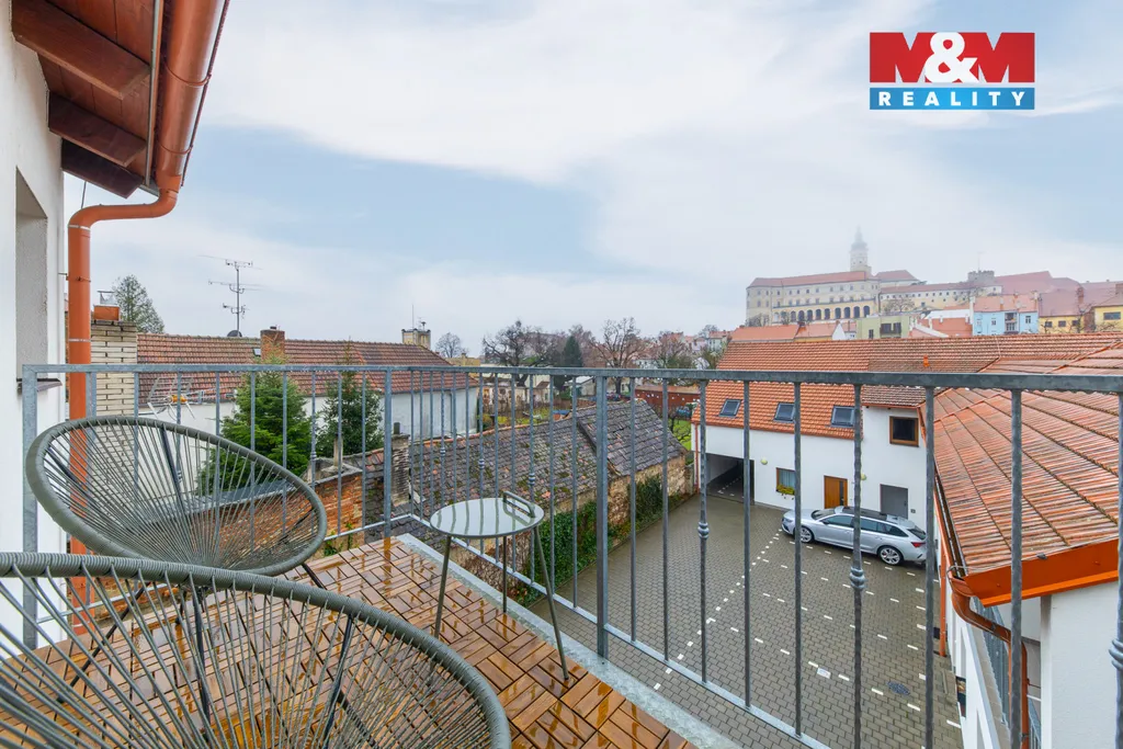 Nabízíme pohledný, světlý mezonetový byt v Mikulově s výhledem přímo na zámek. Byt je prakticky řešený, útulný a ideální jak na bydlení, tak i jako investice. Byt nabízí balkon, který je ideální na ranní kávu nebo večerní sklenku vína. O komfort se stará klimatizace, plovoucí podlaha a plastová okna s trojskly. Moderní kuchyně je vybavená indukční varnou deskou, myčkou a také lednicí. Koupelna je řešena prakticky a najdete v ní sprchový kout, umyvadlo a toaletu. K bytu dále náleží sklepní koje, samostatná vinná kóje a venkovní posezení. Velkou výhodou je také parkovací stání, které je součástí ceny.