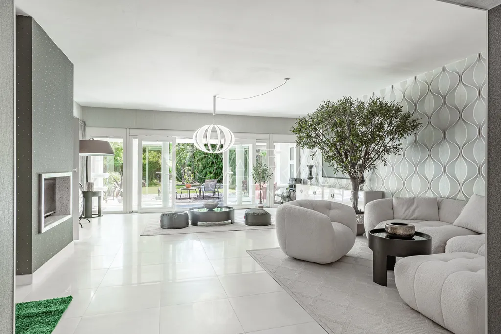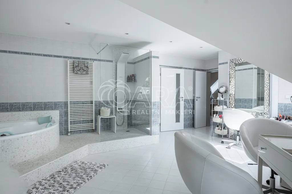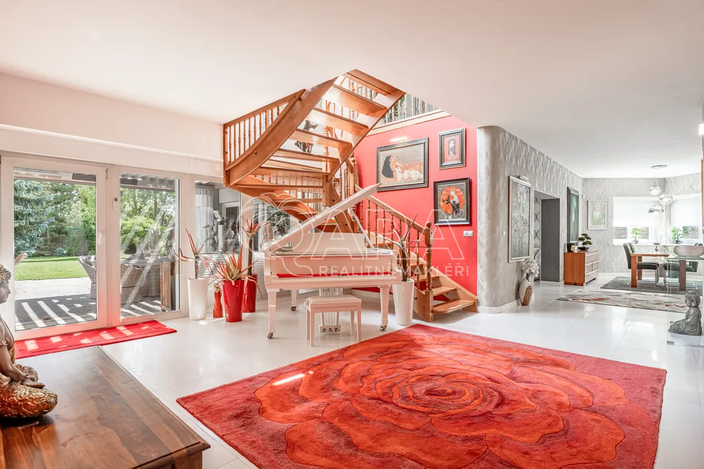 V klidné vilové části obce se nachází dům s plochou 540 m², situovaný na pozemku o celkové výměře 1 749 m², z toho 1 487 m² tvoří parkově upravená zahrada, která poskytuje maximální soukromí a prostor pro relaxaci i společenská setkání.