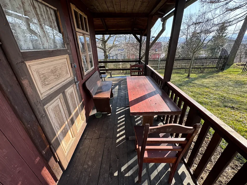 Pozemek je pravidelného půdorysného tvaru obdélníka a je přístupný po nezpevněné komunikaci. Chatka se sestává z hlavní místnosti, místnosti pro potřeby skladování a manipulaci, a přístřešku pro sezení. Chatka ve výborném stavebně-technické stavu, bez elektřiny, na pozemku není voda. Součástí prodeje je veškeré vybavení (sekačka, křovinořez, zahradní vybavení apod.). Na pozemku se dále nachází dřevník, suché WC a venkovní úpravy (oplocení, vrátka, udírna, terénní úpravy apod.).