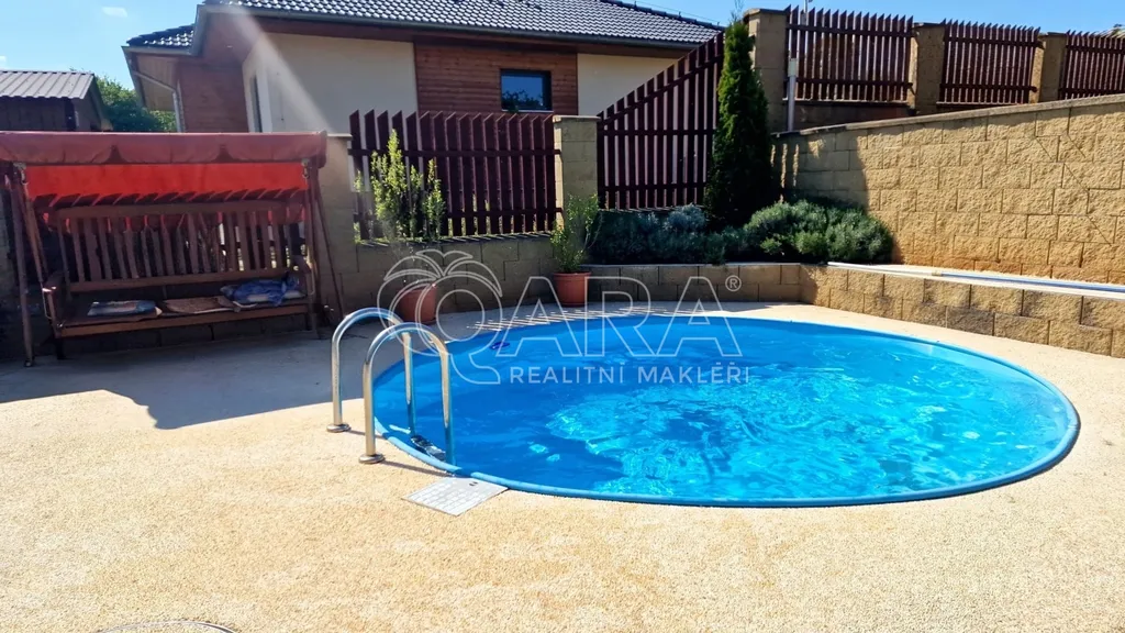 • Exteriér: Pozemek o celkové ploše 773 m² (zahrada 628 m²) s vyhřívaným bazénem, prostorem pro letní kuchyni a sklípkem, parkováním pro 4 vozy přímo na vlastním pozemku.