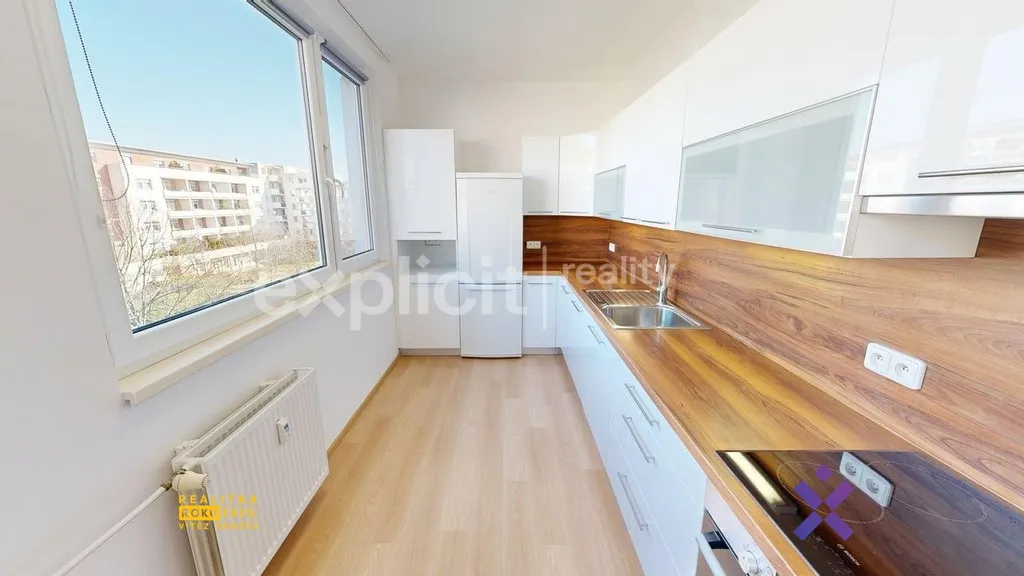 Z obývacího pokoje se vstupuje do zrekonstruované kuchyně a do dalšího pokoje, ze kterého je přímý vstup na lodžii. Ta nabízí příjemné místo pro ranní kávu, čtení nebo klidný odpočinek s výhledem do okolí. Úložné skříně jsou navíc umístěny i v pokojích, což zvyšuje praktičnost bydlení.