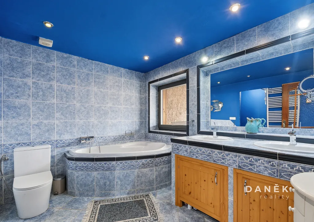 Součástí patra je druhá koupelna doplněná technickým zázemím s přípravou pro pračku, sušičku a další domácí vybavení, díky čemuž je prostor plně funkční i pro vícečlennou domácnost. Koupelna je vybavena podlahovým vytápěním, které zvyšuje komfort každodenního užívání a podtrhuje praktický charakter tohoto podlaží.