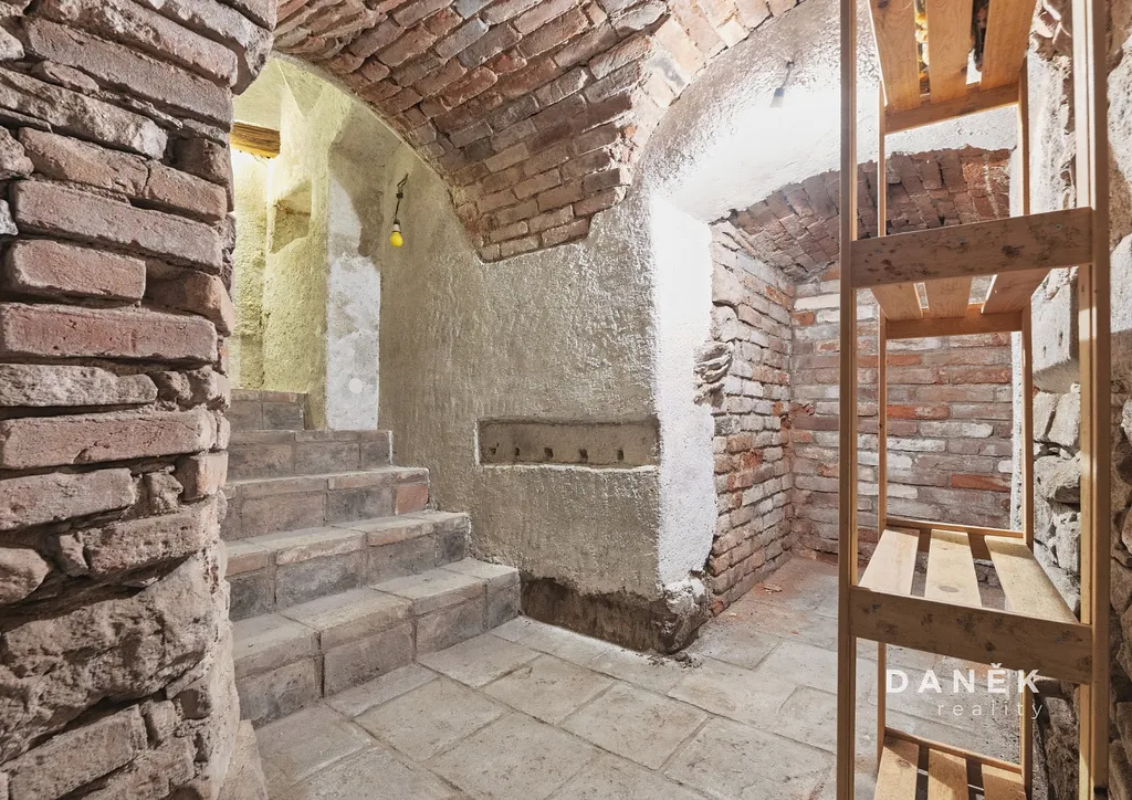 Z chodby je zároveň přístup do původního sklepa o ploše 20 m² s kamennými základy, které výrazně podtrhují historický charakter celé nemovitosti a vytvářejí autentickou atmosféru typickou pro původní městské domy.