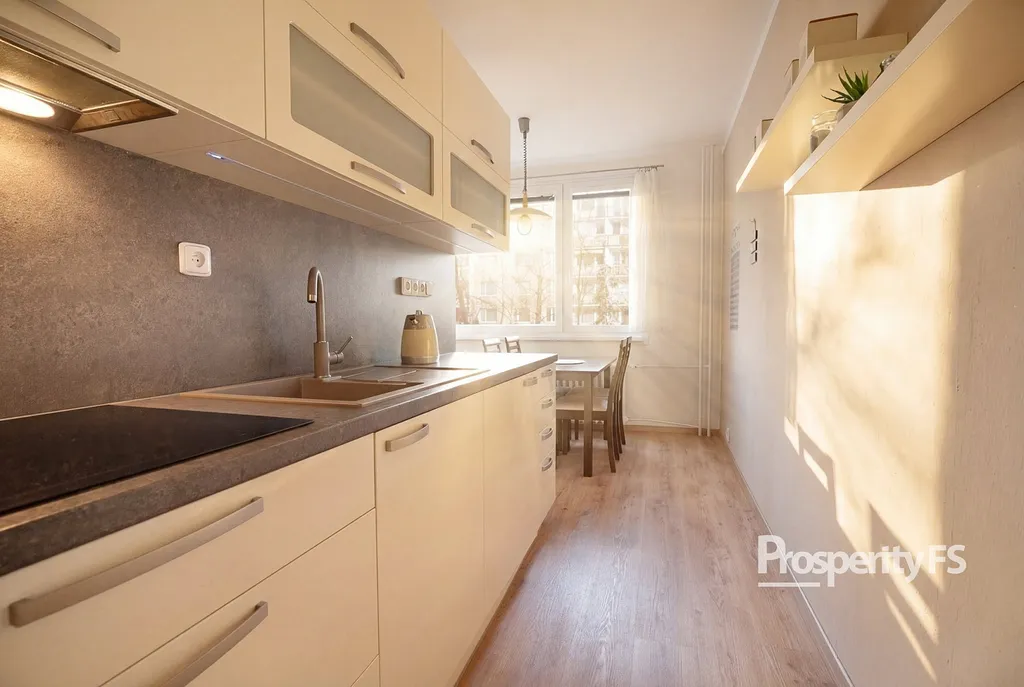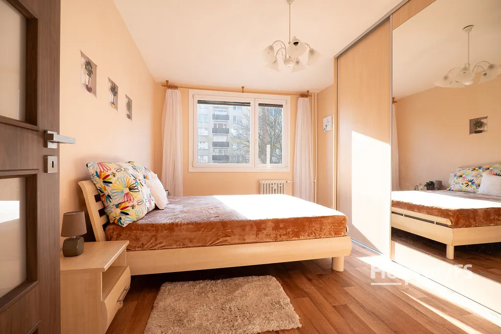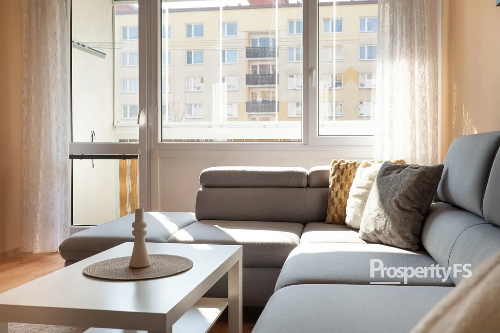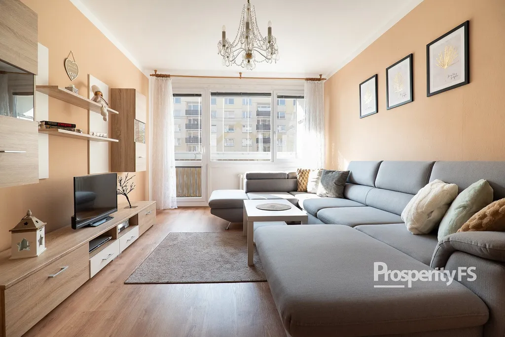 Dispoziční řešení bytu nabízí vstupní chodbu, prostorný obývací pokoj se vstupem na lodžii, kuchyň, ložnici a koupelnu s toaletou. Nabízený byt prošel vkusnou rekonstrukcí, má zděné bytové jádro, plastová okna se žaluziemi. Podlahovou krytinu tvoří lepený vinyl v kombinaci s keramickým obkladem a PVC v ložnici. Nízké měsíční náklady, rozpis lze získat na prohlídce. K bytu náleží sklepní kóje.