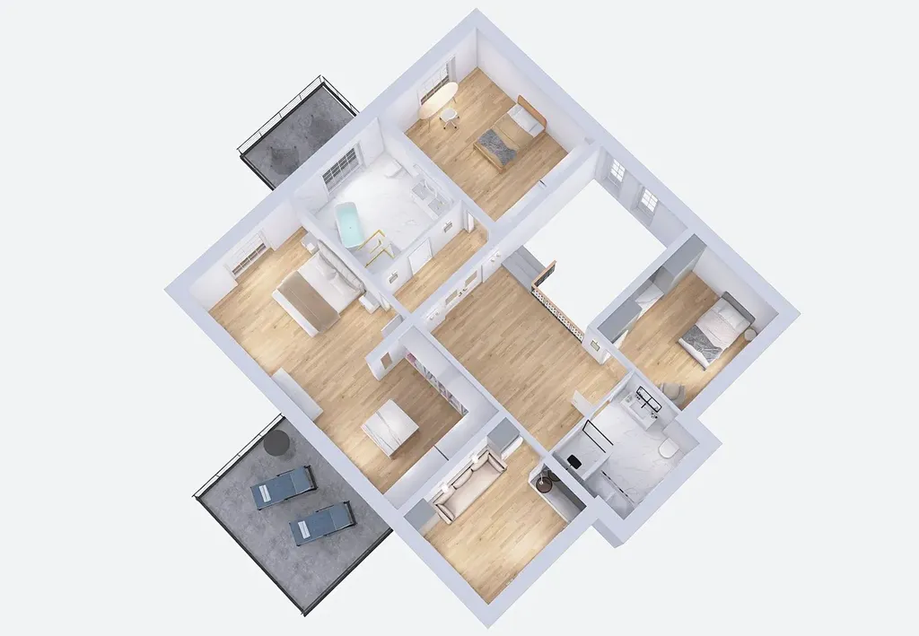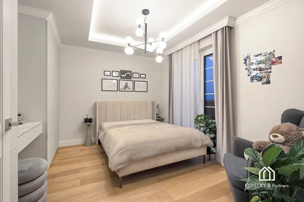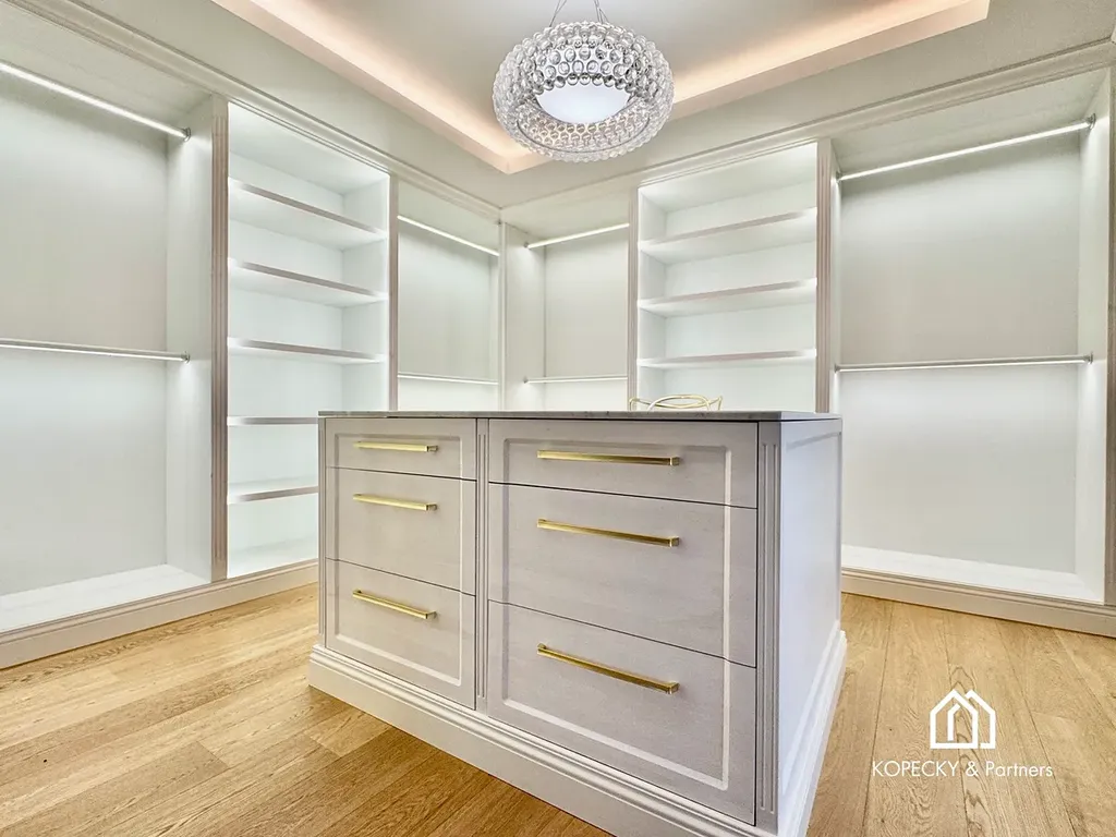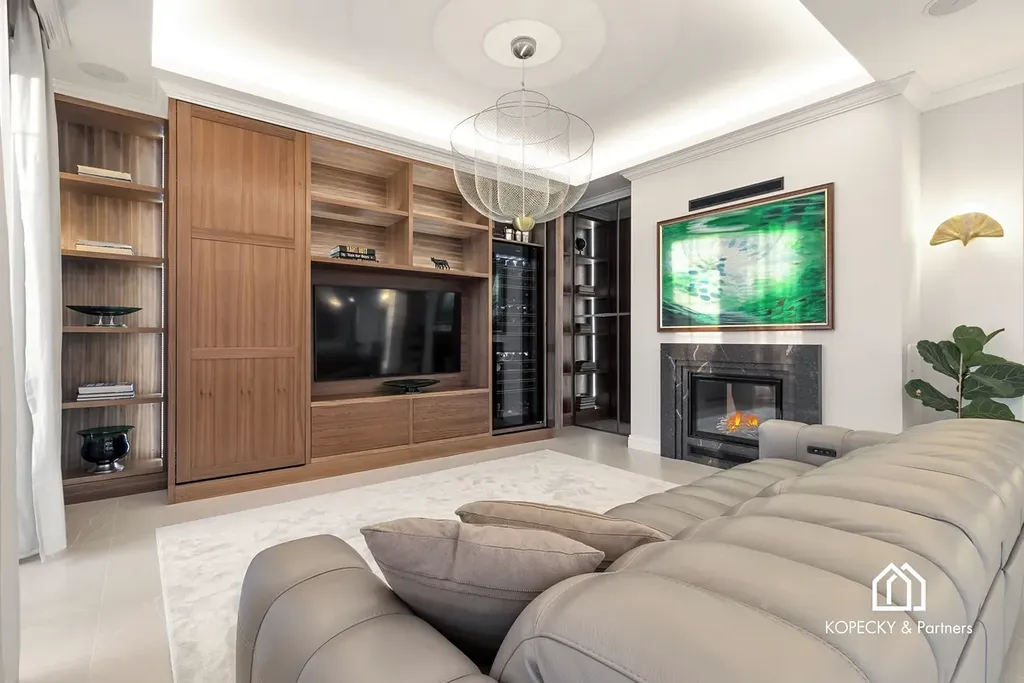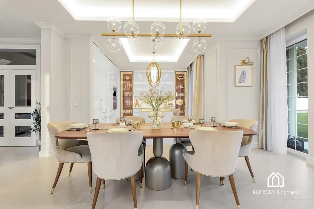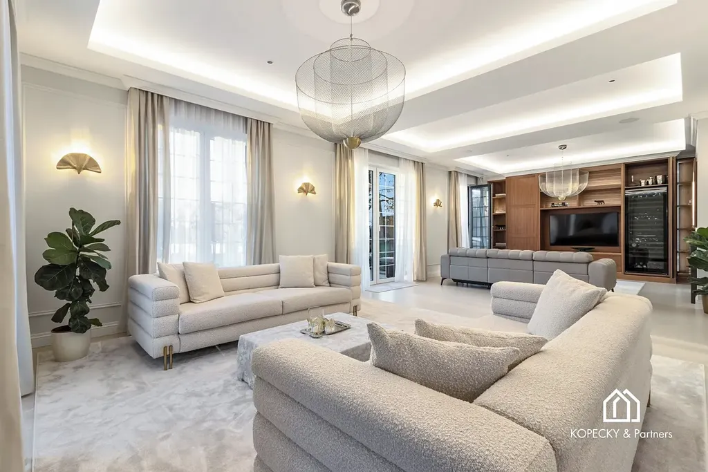 Celý dům je zařízen v duchu sofistikované elegance – od ikonických svítidel navržených Zahou Hadid, přes jídelní stůl Bonaldo pro deset hostů, až po nábytek a osvětlení od značek Eichholz, Moooi či Cattelan Italia. Každý detail byl pečlivě vybrán tak, aby tvořil harmonický celek.