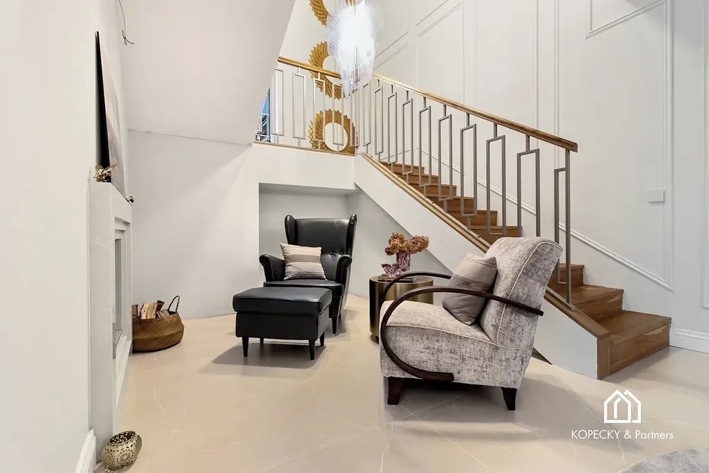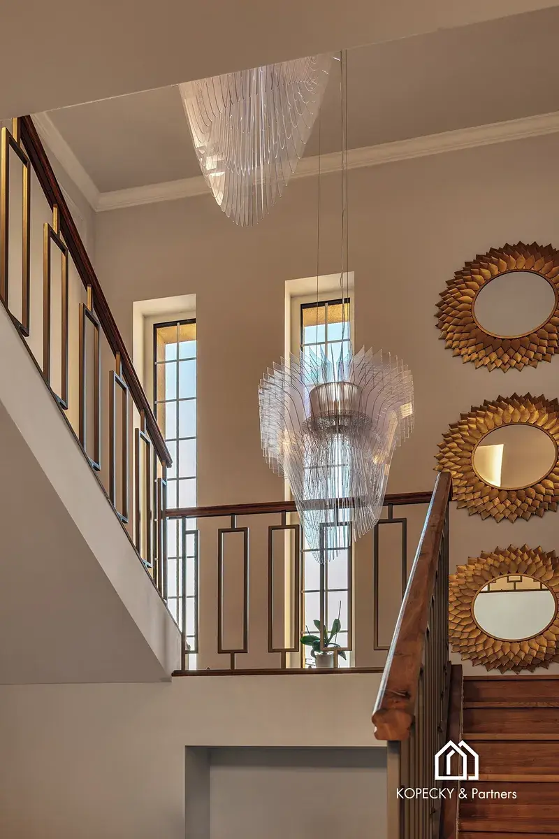 Součástí kupní ceny je nadstandardní interiérové vybavení laděné do stylu art deco, včetně designového nábytku a svítidel od renomovaných značek. Dům je díky tomu připraven k okamžitému užívání bez nutnosti dalších investic do vybavení.