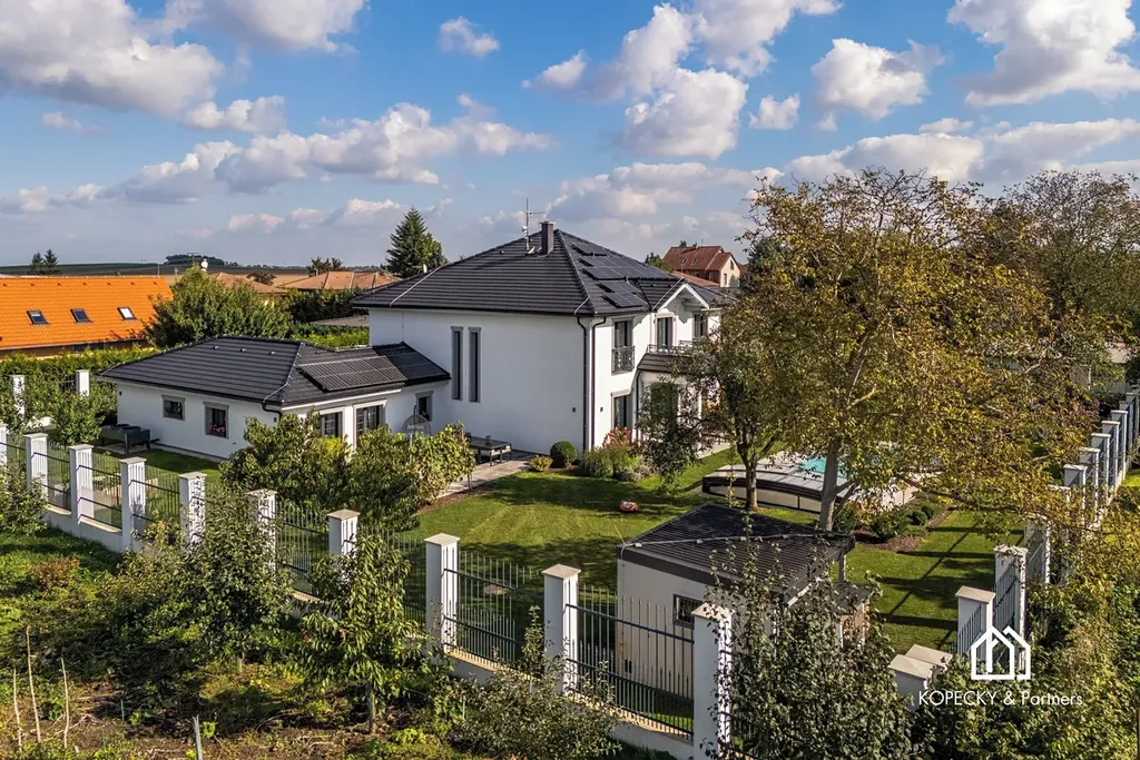 Exkluzivně nabízíme reprezentativní vilu v žádané obci Přezletice, jen pár minut od Prahy. Tato výjimečná nemovitost s užitnou plochou 405 m² stojí na soukromém pozemku o velikosti 2 211 m² a je dokonalou ukázkou propojení moderní architektury, špičkových technologií a nadčasového interiérového designu.