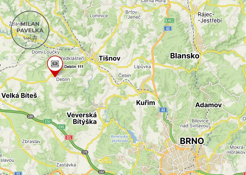 Deblín, prodej RD 4+2, stodola, garáž, pozemek 1542 m²