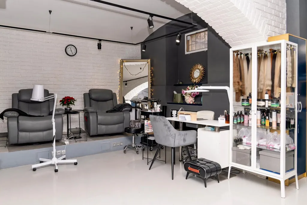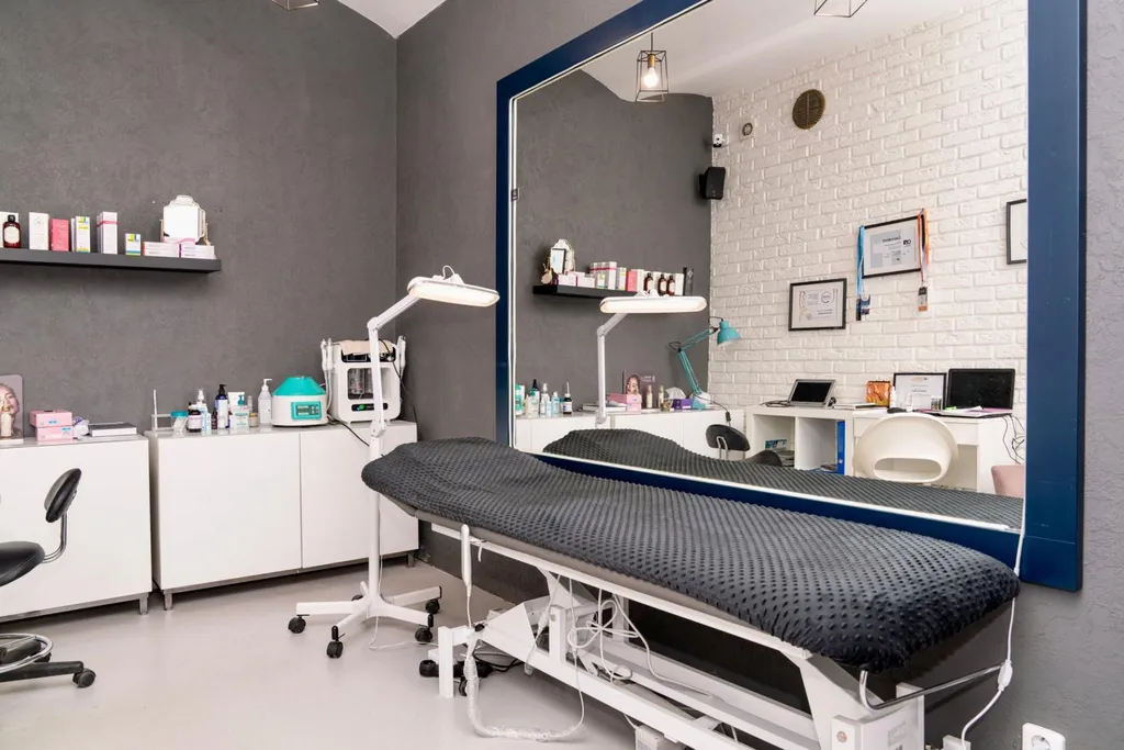 Interiér je moderní a profesionálně zařízený, což vytváří příjemnou atmosféru pro klienty.