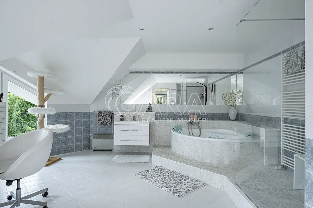 V klidné vilové části obce se nachází dům s plochou 540 m², situovaný na pozemku o celkové výměře 1 749 m², z toho 1 487 m² tvoří parkově upravená zahrada, která poskytuje maximální soukromí a prostor pro relaxaci i společenská setkání.