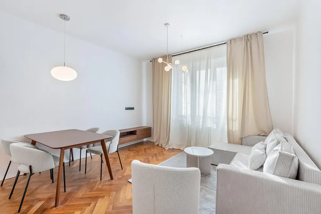 Tento kompletně zrekonstruovaný byt se nachází v 1. nadzemním podlaží a nabízí praktickou dispozici se dvěma samostatnými ložnicemi.